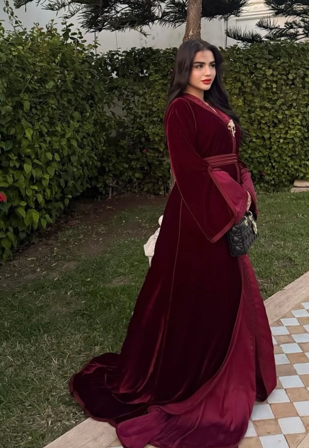 تكشيطة عنابية أنيقة، مزيج من المخمل والحرير الفاخر