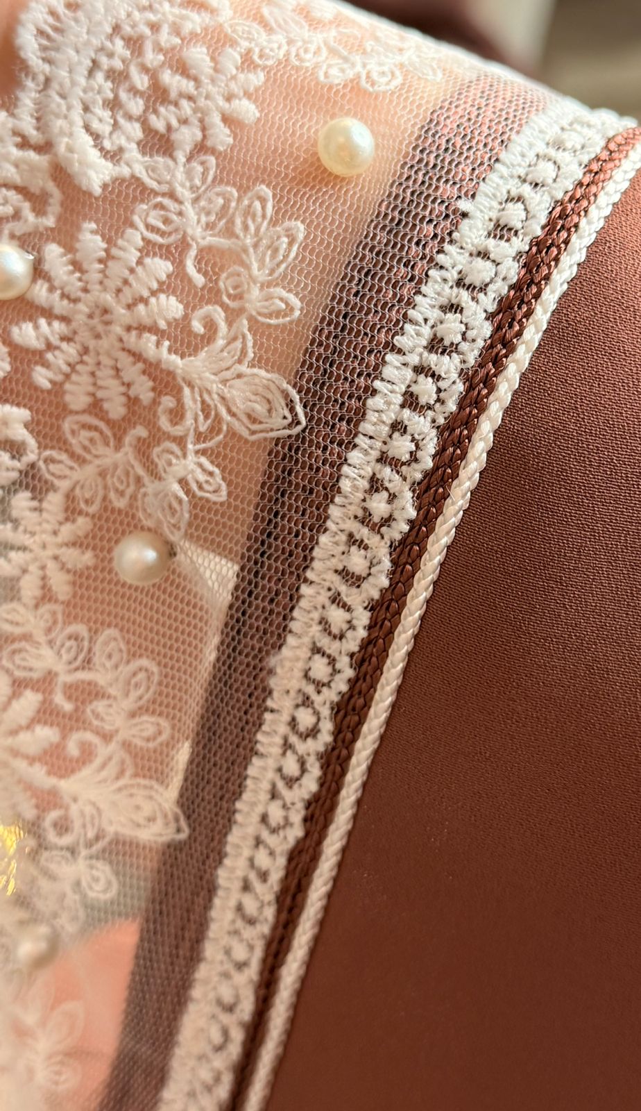 قماش كريب فاخر زيّنها دانتيل راقٍ يزيدها أنوثة وفخامة.