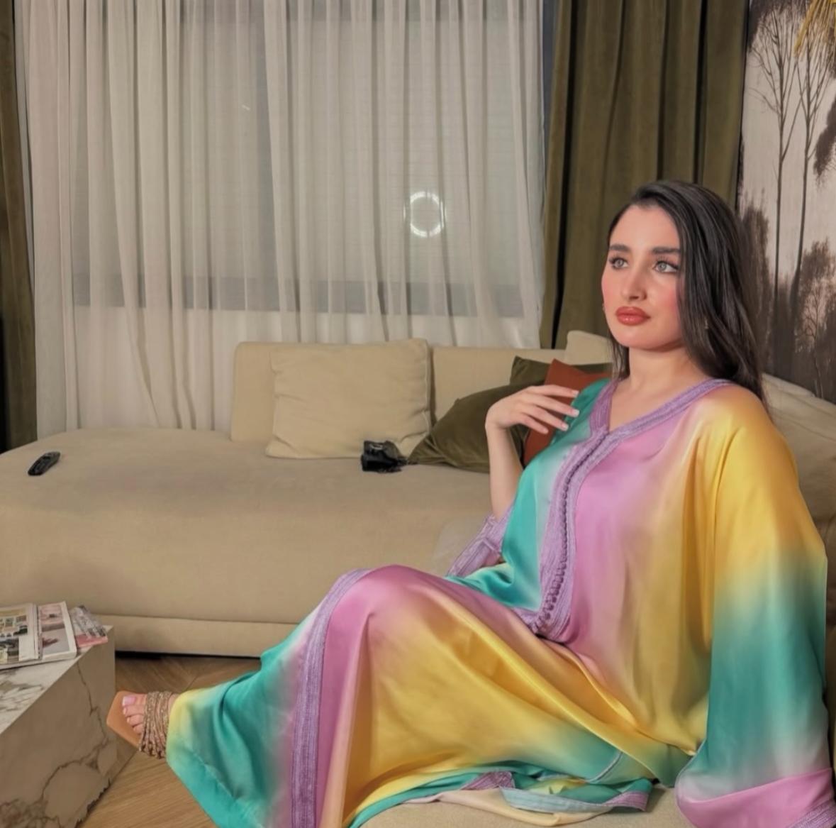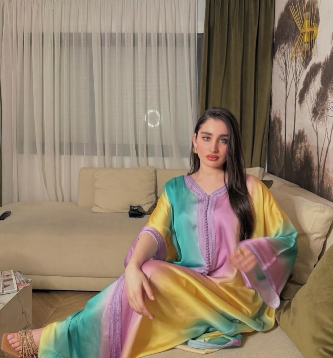 كندورة مغربية راقية من حرير فاخر، بألوان مميّزة تنبض بالأناقة.